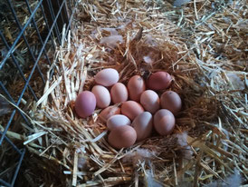 Schwankungen (wenn draußen nicht mehr so viel Grün wächst, sind die Dotter meist heller).