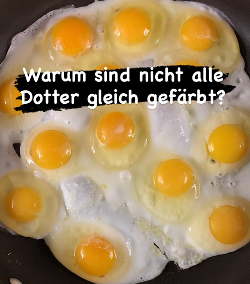 synthetische Futterfarbstoffe eingesetzt, damit alle Dotter gleichmäßig dunkel gefärbt sind.